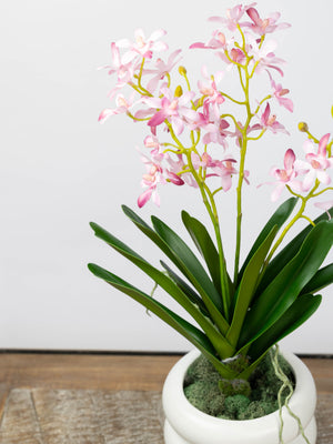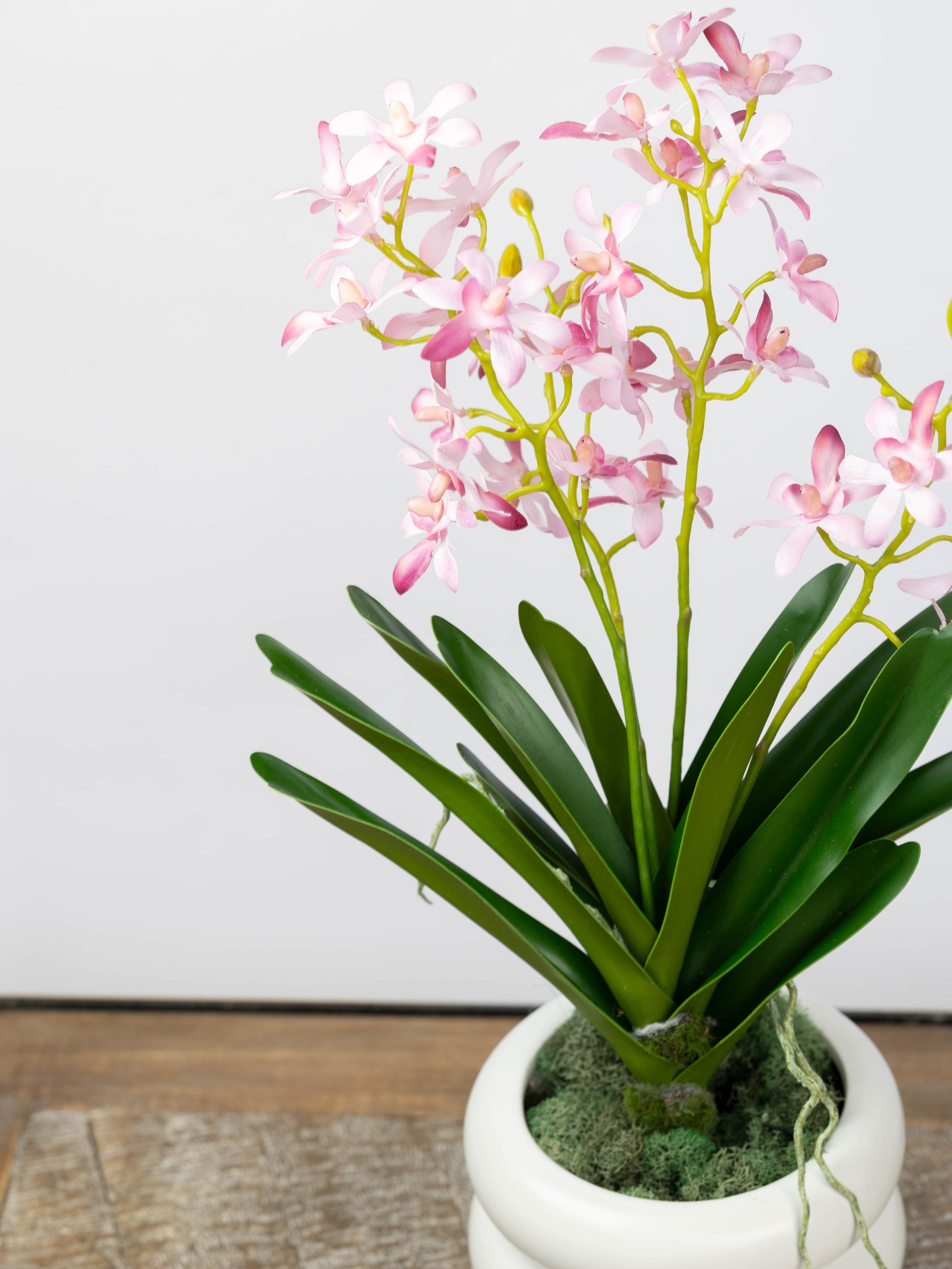 The Artificial Vanda Orchid stem in Pink is a meticulously crafted and lifelike decorative element designed to replicate the beauty of a real Vanda Orchid. With stunning attention to detail, the faux stem features delicate pink petals, vividly capturing the elegance and charm of this exotic flower. This artificial creation offers a durable and maintenance-free alternative to natural flowers, making it a perfect choice for adding a touch of nature-inspired beauty to any space, be it home or office.
